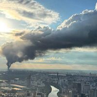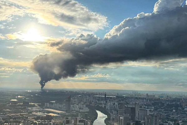 Очевидцы сняли на видео столб черного дыма на Новорижском шоссе. По их словам, на месте пожара слышны звуки взрывов. Там могут детонировать газовые баллоны.