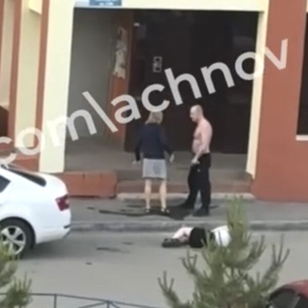 В этот момент мужчина, держащий в руках предмет, похожий на пистолет, собирается выстрелить и кричит: «Я тебя сейчас завалю». От необдуманного поступка хулигана удержала женщина, оказавшаяся поблизости, предположительно, его супруга.