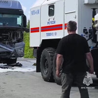 В том числе в записи показано, как сотрудники экстренных служб эвакуируют рухнувшие вместе с переправой транспортные средства.