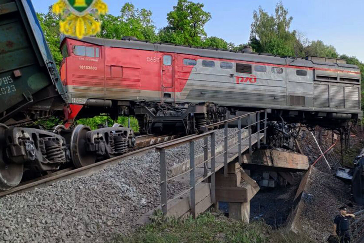 Инцидент случился в ночь на 1 июня в Железногорском районе. В момент происшествия по мосту проходил грузовой локомотив. Одна из секций поезда сорвалась вниз на автомобильную дорогу, проходившую под путепроводом.