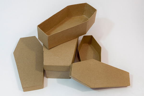 Продавцы говорят, что картонные гробы выдерживают нагрузку до 150 кг и быстро сгорают во время кремации.