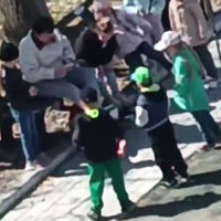 Соответствующие кадры появились в пабликах города. На видео заметно, как женщина в окружении детей и, предположительно, коллег, опирается ногами на мальчика.