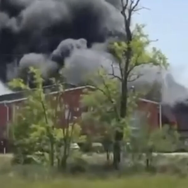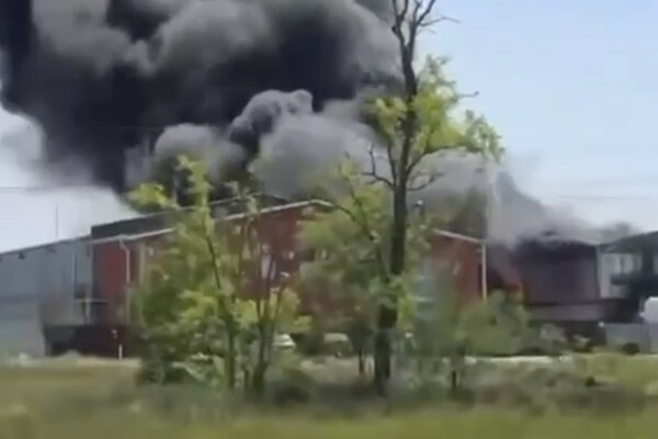 Сейчас в Азове горит склад на 2 000 кв. м. На месте работают 37 огнеборцев и 13 единиц техники.