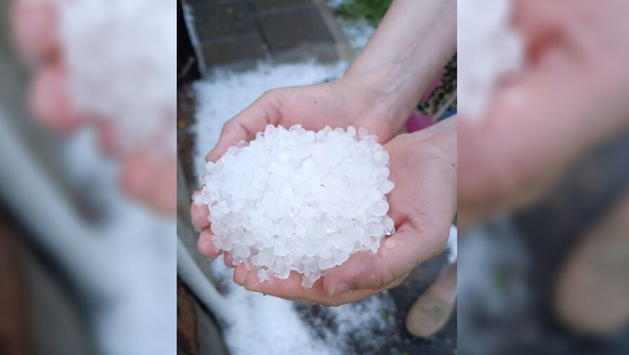 На опубликованных кадрах показаны горсти крупного града, который выпал в подмосковных Наро-Фоминске и Апрелевке.