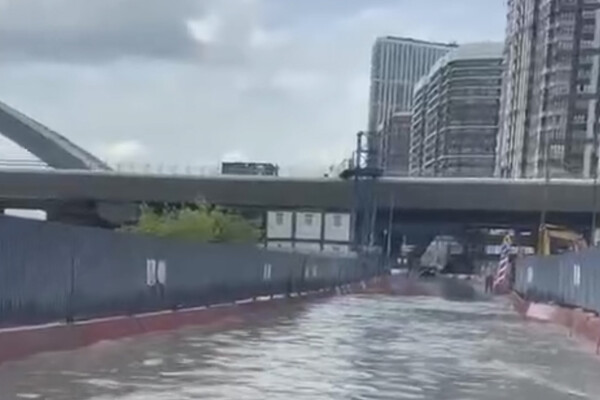 После сильного ливня Шелепихинская набережная в Москве превратилась в реку. Видео опубликовал RT.