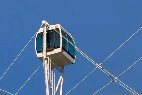 Мужчина забрался наверх закрытой кабины на высоте около 140 метров над землей.