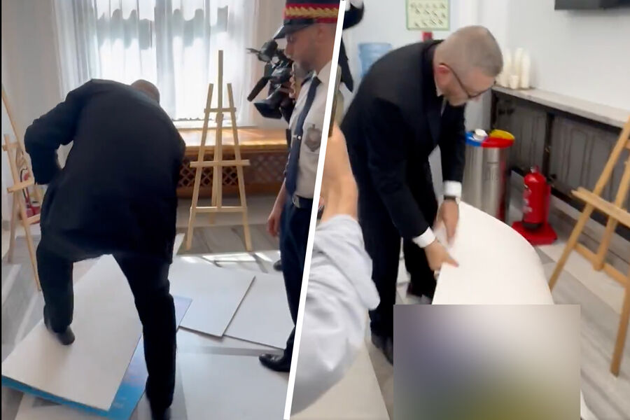 Как пишет издание, Браун появился в сейме и, увидев инсталляцию, сбросил несколько плакатов с треног, а затем сломал их, топча ногами.