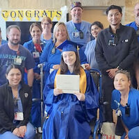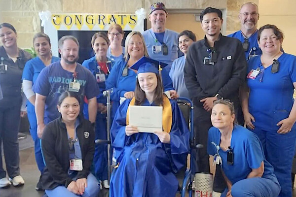 Персонал больницы вместе с мамой Лоры Бренди украсили помещение синими и золотыми воздушными шарами и плакатами с надписями «Поздравляем, выпускник!». Всё больничное пространство было преобразовано — там создали атмосферу настоящего выпускного вечера.