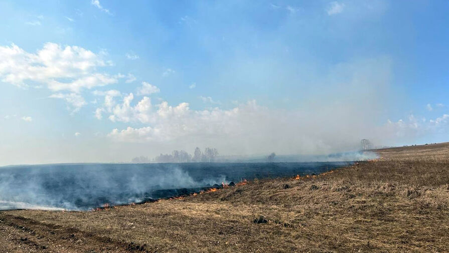 Пламя охватило прошлогодний сухостой на землях сельскохозяйственного назначения. В тушении огня участвовали 28 пожарных и 10 единиц специальной техники.