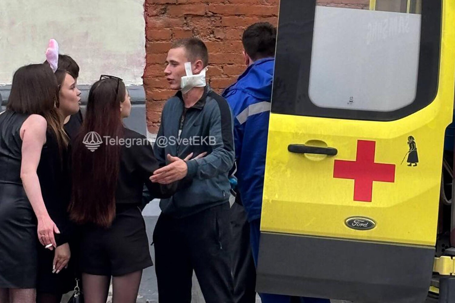 Молодой человек получил ножевое ранение в шею в центре Екатеринбурга. Фото с места событий опубликовал Telegram-канал «Свет Екатеринбург».