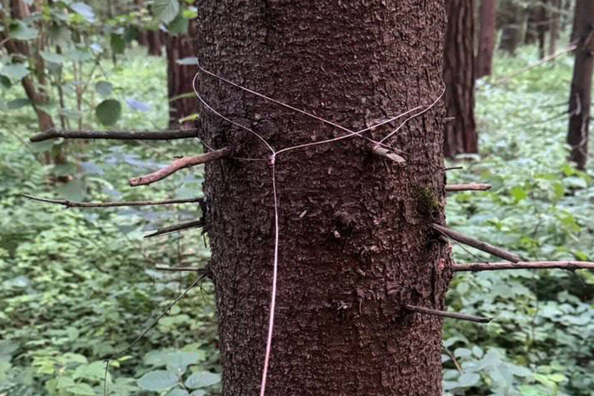 Неизвестный делает растяжки из медной проволоки в подмосковном лесу. Об этом стали писать в чате ЖК «Одинцово-1», сообщает «Осторожно, Москва».