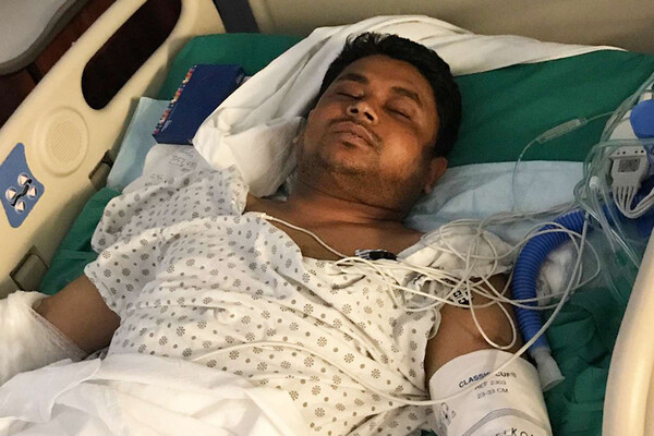 После падения Хоссейна сбил поезд. Согласно медицинскому отчету эксперта по неотложной помощи доктора Кашаула Шаха, представленному в суд, мужчина получил множественные травмы шеи, спины, головы, конечностей и внутренних органов. Его левая ступня была раздроблена, потребовалась ампутация всех пальцев и части плюсневых костей. Сила удара была такой, что у пострадавшего вывихнуло бедро.