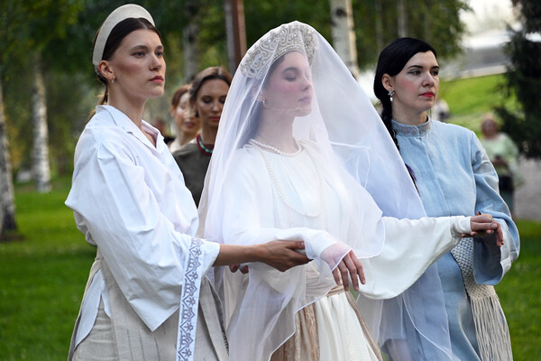 В Москве в День семьи, любви и верности состоялся перформативный показ одежды русских дизайнеров «Русский стиль. Обряд». Мероприятие провели в Березовой роще, сообщает пресс-служба проекта.
