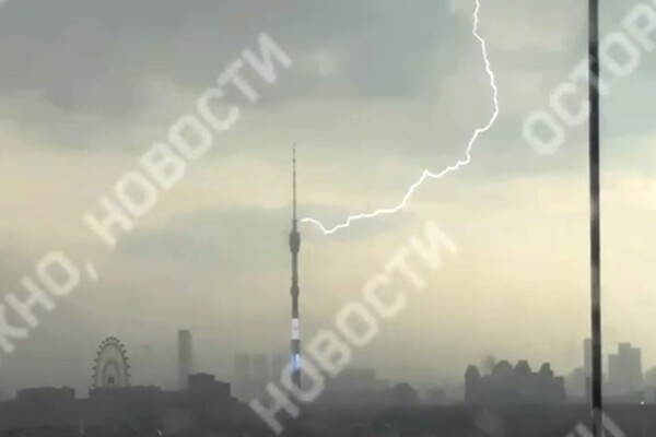 В Москве во время ливня молния ударила в Останкинскую телебашню. Об этом сообщает Telegram-канал «Осторожно, новости».