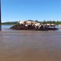 В Республике Саха (Якутия) в селе Хара-Тумул коровы, спасаясь от наводнения, забрались на холм. Об этом пишет Telegram-канал «Осторожно, новости».