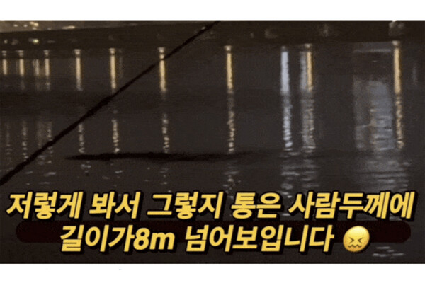 Автор видео рассказал, что снимал ночную рыбалку недалеко от парковки у здания Национальной ассамблеи на острове Ёйдо, когда заметил в воде крупный движущийся объект. Первоначально он предположил, что это большая рыба, но при ближайшем рассмотрении запаниковал.