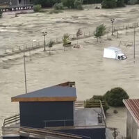 Кроме того, стихия повредила еще один мост, на этот раз автомобильный. Сила течения была такова, что металлические перила сломались и ушли под воду.