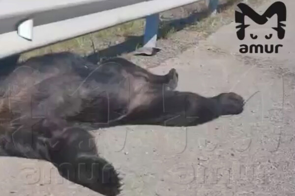 В Хабаровском крае медведь выбежал на трассу и попал под колеса машины