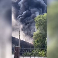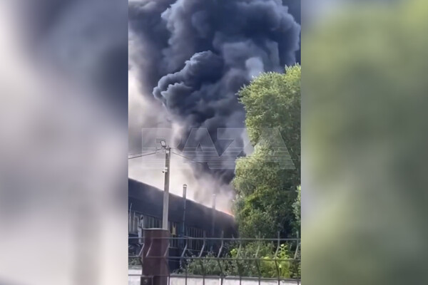 «В подмосковном поселке Гжель вспыхнул крупный пожар на территории бывшего завода «Синь России», — говорится в посте.