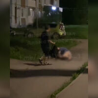 На них мальчик в черной футболке и шортах такого же цвета нападает на женщину. Сначала он замахивается на нее рюкзаком и, не встречая сопротивления, валит ее на землю и избивает уже не только рюкзаком, но и ногами.