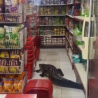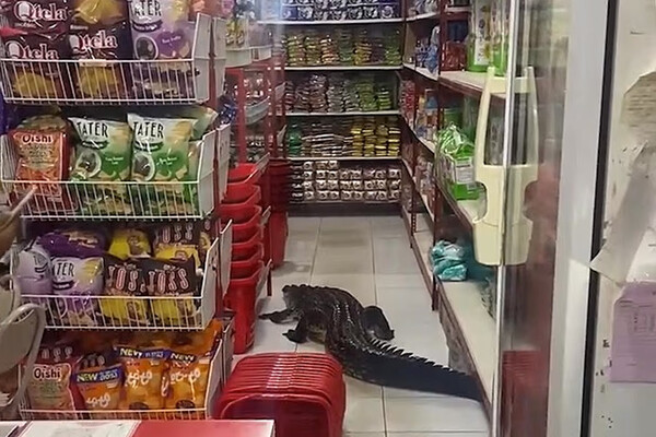 Посетители супермаркета на острове Талиабу в Индонезии столкнулись с трехметровым крокодилом, свободно расхаживающим между рядами с продуктами, пишет Daily Mail.