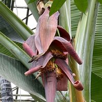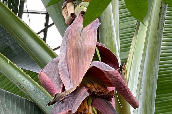 В тропической части ботанического сада, в Пальмовой оранжерее, начало цвести одно из самых крупных травянистых растений в мире — райский банан (Musa paradisiaca), рассказали в «Аптекарском огороде».