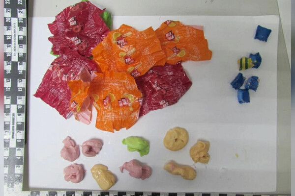 «Полицейские обнаружили 27 жевательных конфет, в которых были спрятаны свертки с неизвестным веществом. Исследование части изъятого показало, что в них содержится метадон», — говорится в сообщении.