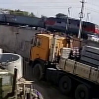 На кадрах с места инцидента заметно, как легковая машина выезжает на рельсы в момент, когда недалеко от нее находится поезд. В результате водитель не успел переехать рельсы и был сбит составом.