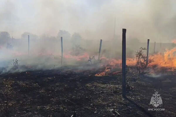 По данным ведомства, информация о возгорании сухой растительности поступила в 9:37 (совпадает с мск). На место происшествия направили 105 сотрудников экстренных служб и 22 единицы техники.