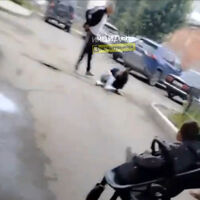 Девушка за кадром обратилась к прохожим с просьбой помочь, но те лишь сообщили, что уже вызвали полицию. В итоге пострадавшей удалось вырваться. Кем ей приходится агрессор — неизвестно.