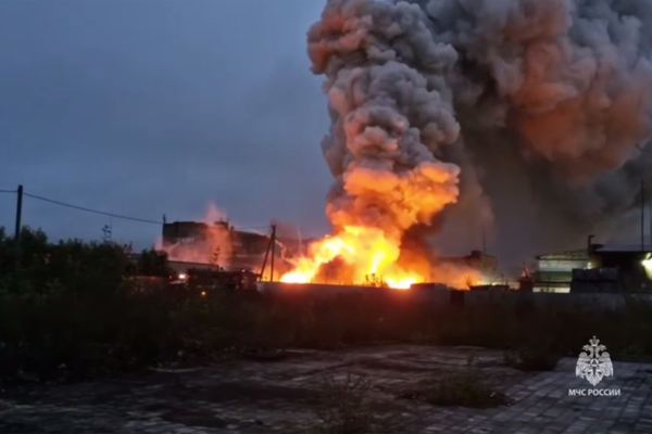Площадь пожара составила 950 квадратных метров, он уже локализован. К борьбе с огнем привлечены 68 человек и 23 единицы техники. Судя по кадрам с места событий, горящее оборудование продолжает детонировать.