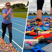 Женщина пробежала 100 метров босиком по деталям Lego и установила рекорд
