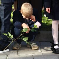 В День знаний женщина искала сына на школьной линейке, но Альберт заявил, что перевел ребенка на домашнее обучение. Журналисты не смогли получить от него комментарий.