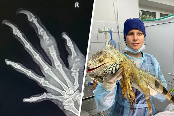Инцидент произошел, когда рептилия во время гона начала атаковать свое отражение в зеркале, приняв его за соперника. В результате игуана сломала два пальца, однако владельцы заметили травму лишь через три недели, когда появились отек и болезненность.