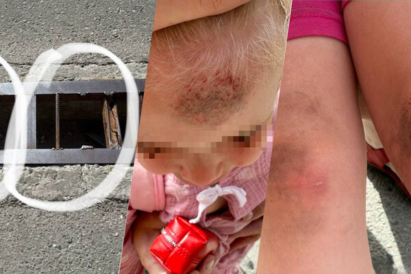 Инцидент произошел в Свердловском районе города на улице Пушкина, 36/1. Малолетняя девочка провалилась в решетку ливневой канализации и получила травмы. В результате падения у нее образовалась большая гематома на лбу и синяки на коленях.