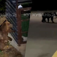 По словам жителей курортного поселка, зверя все чаще выходят к жилым домам, разоряют помойки и ведут себя агрессивно. На одной из опубликованных каналом записи медведица с медвежатами разоряют закрытую помойку, ловко забираясь в нее по металлической сетке. На второй записи медвежонок гонится за проезжающим на электровелосипеде курьером, но отступает, испугавшись следующей за курьером машины.