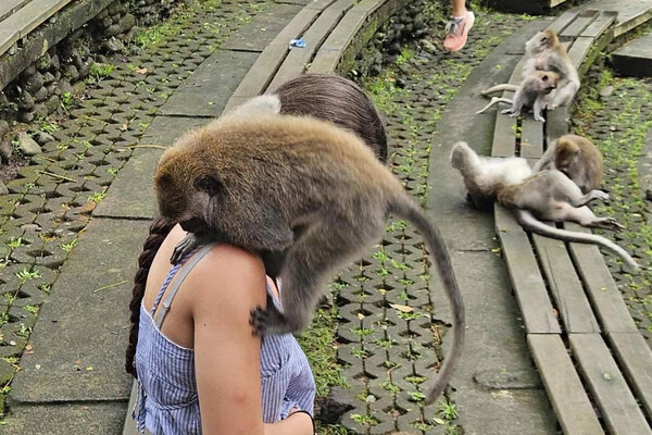Агрессивная обезьяна укусила в шею 12-летнюю туристку во время экскурсии на Бали