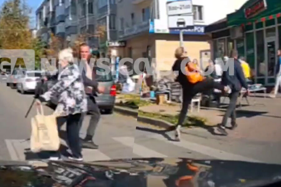 В Калуге неадекватный мужчина напал на пенсионерку и сразу же получил ответ ногой от другой женщины. Видео с инцидентом, снятое на авторегистратор, разместил паблик «Калуга» во «ВКонтакте».