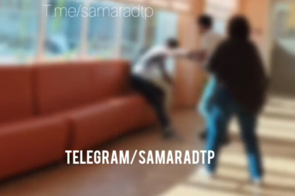 В Самаре мужчина напал на школьника, который якобы избил его сына. Потасовка в здании школы попала на видео, его опубликовал Telegram-канал «Самара ДТП».