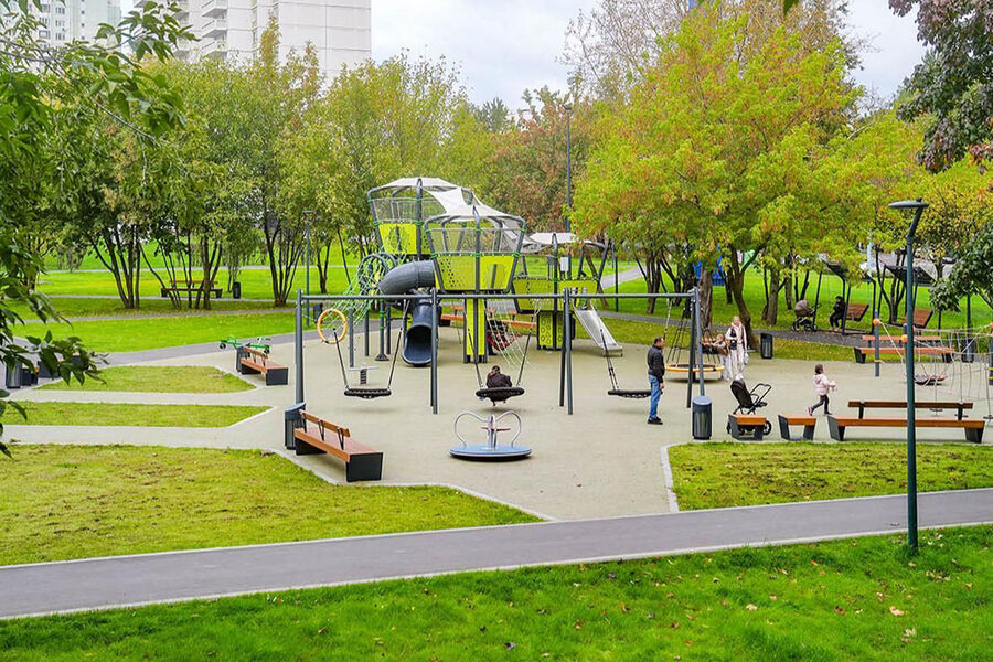 В пресс-служба комплекса городского хозяйства столицы отметили, что игровая зона парка оборудована травмобезопасным покрытием.