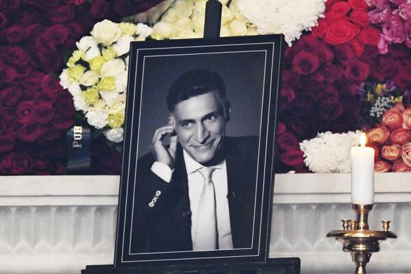 Десятки людей несут цветы к часовне, в которой находится гроб с телом режиссера.