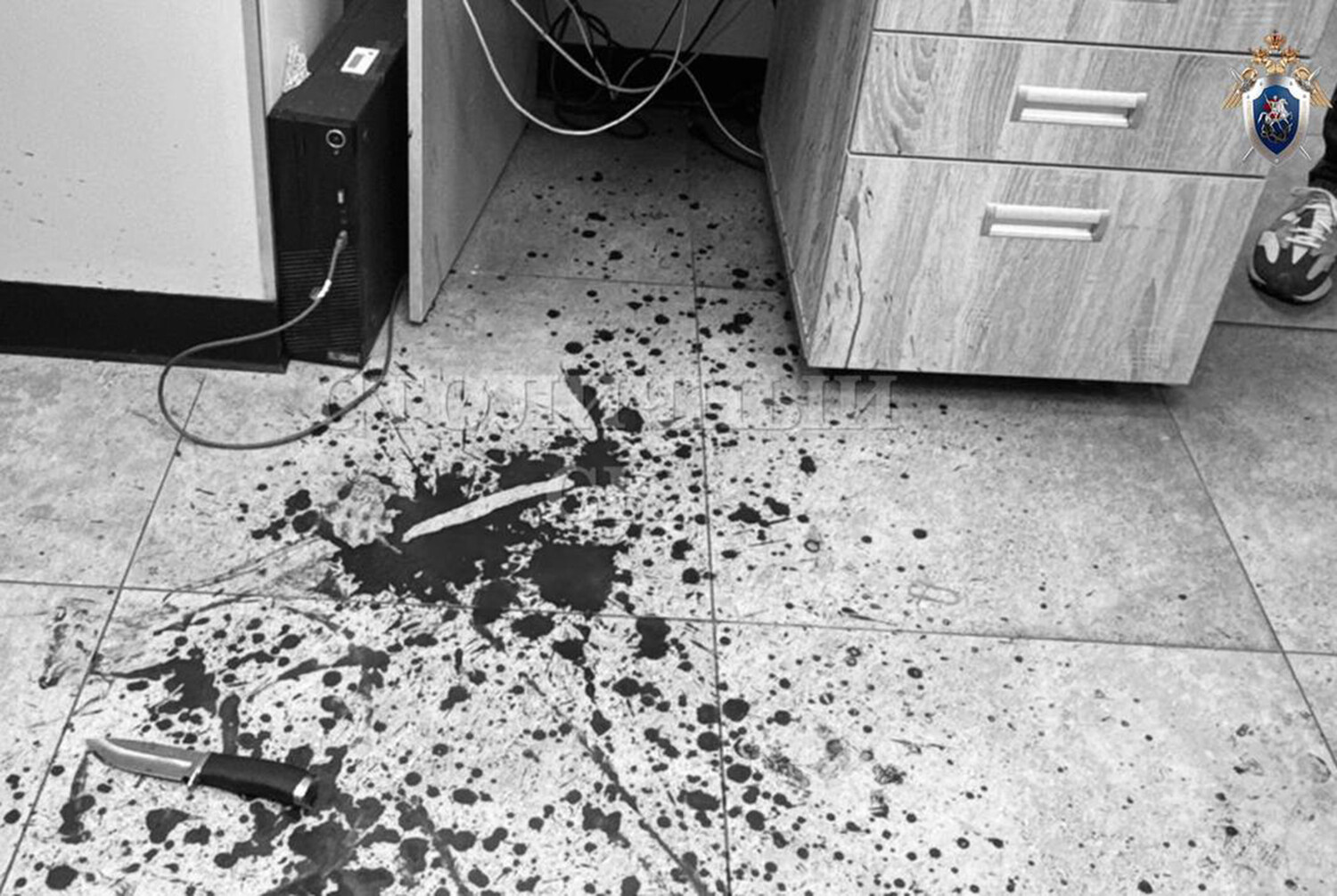 Следователи и криминалисты работают на месте происшествия. В пресс-службе столичной прокуратуры добавили, что, по версии следствия, на женщину напал коллега на почве личных неприязненных отношений.