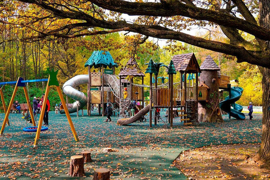 Первое место по итогам опроса занял игровой городок в саду имени Н.Э. Баумана, набрав 26% голосов. На этой площадке представлены горки, веревочный мини-городов, мини-скалодром и другие развлечения для детей. Ребята младшего возраста могут провести время в песочнице и покататься на качелях.