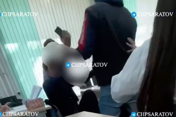 В Саратове мужчина ворвался на урок к восьмиклассникам в школе №86 и избил одного из учеников. Видео инцидента опубликовал Telegram-канал «ЧП Саратов».