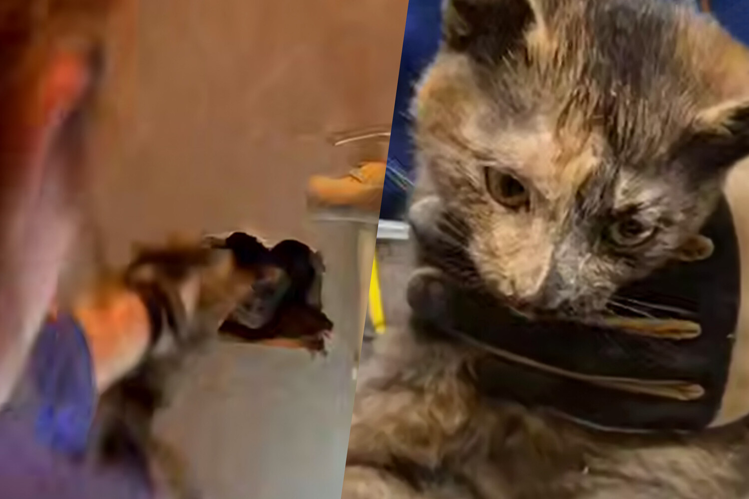 После долгих манипуляций животное удалось вызволить из стены. Кошку напоили водой, покормили и показали ветеринарам. Сейчас с животным все хорошо, ему ищут хозяина.