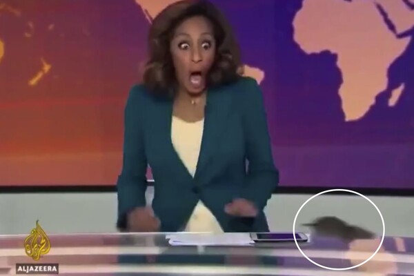 В прямом эфире катарского телеканала Al Jazeera ведущая испугалась огромной крысы, пробежавшей по столу.