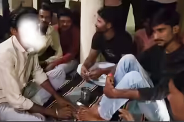 В Индии мужчину заставили помыть ноги чиновнику и выпить эту воду за мем с его участием