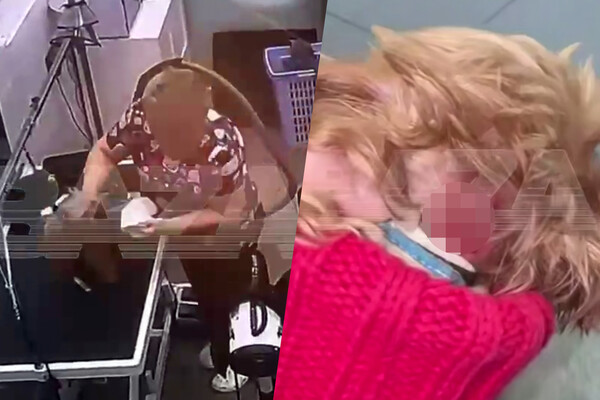 На кадрах из салона заметно, как мастер резко вытирает морду животному и грубо расчесывает его.