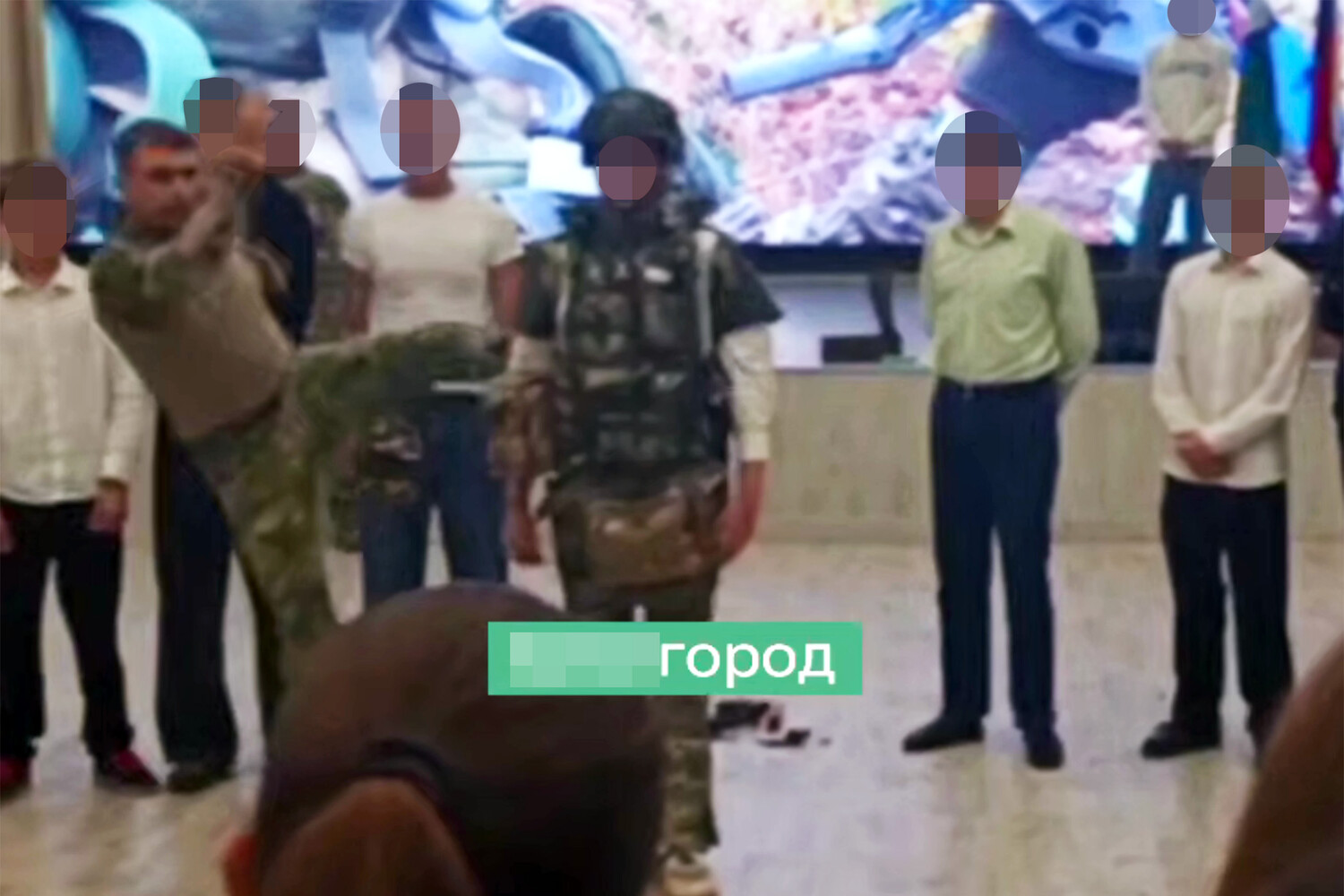 На видео, которое, как сообщается, снято на курсах «Формулы успеха», подростка одели в экипировку, а инструктор ударил мальчика. После этого военный предложил сделать то же самое другим девятиклассникам.