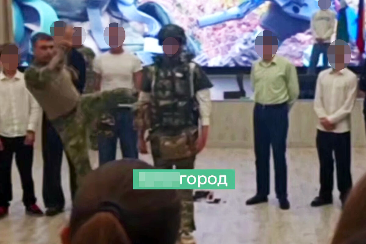 «Собрали (детей. – Прим. ред.) в актовом зале, где военные просили перетягивать жгутами руки, держа конец в зубах. По словам одной из матерей, у некоторых детей посинели руки. […] подросткам кричали «ты двухсотый» и показывали картинки с трупами», – пишет издание.